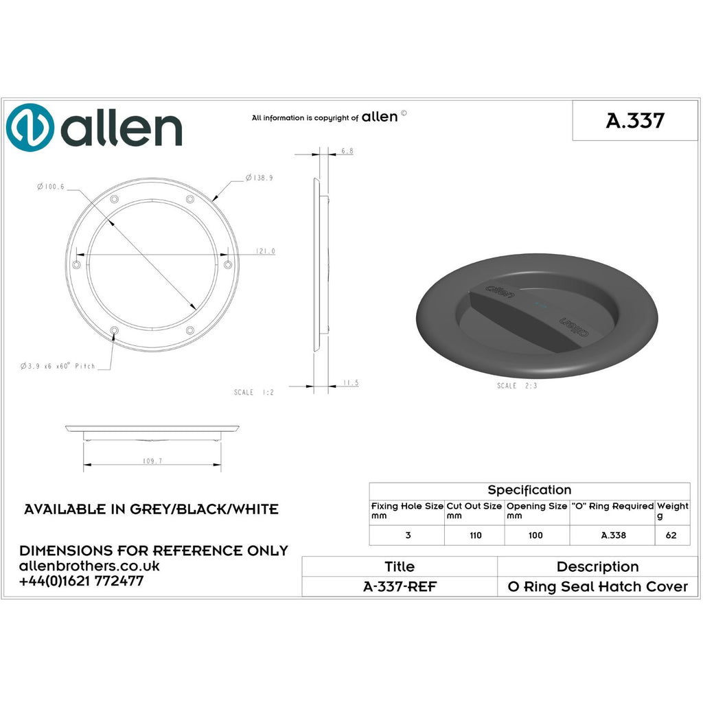 Inspektionslucka från Allen för segeljollar och kölbåtar. Inklusive monteringssarg och skruvlucka. Tätas med o-ring som säljs separat.