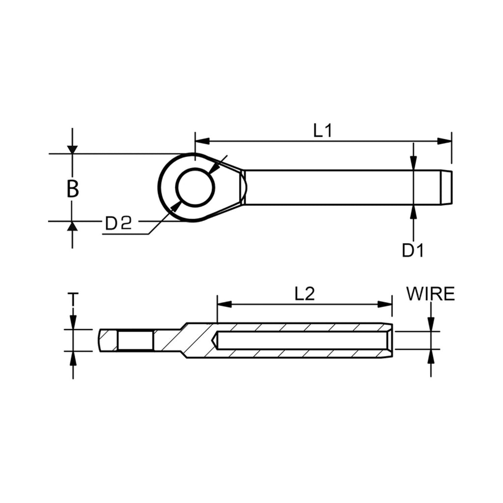 Ögleterminal för vajer från Blue Wave, tillverkad i AISI 316 rostfritt stål. För 6 mm och 3/32" vajer.