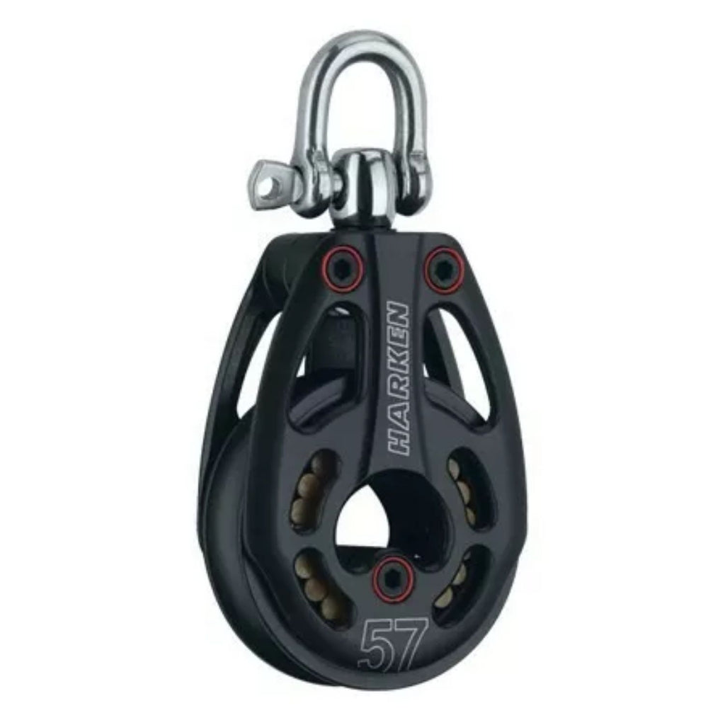 Harken 57 mm Black Magic rullagrat enkelblock i aluminium. Svirvlande med låsbar svirvel.