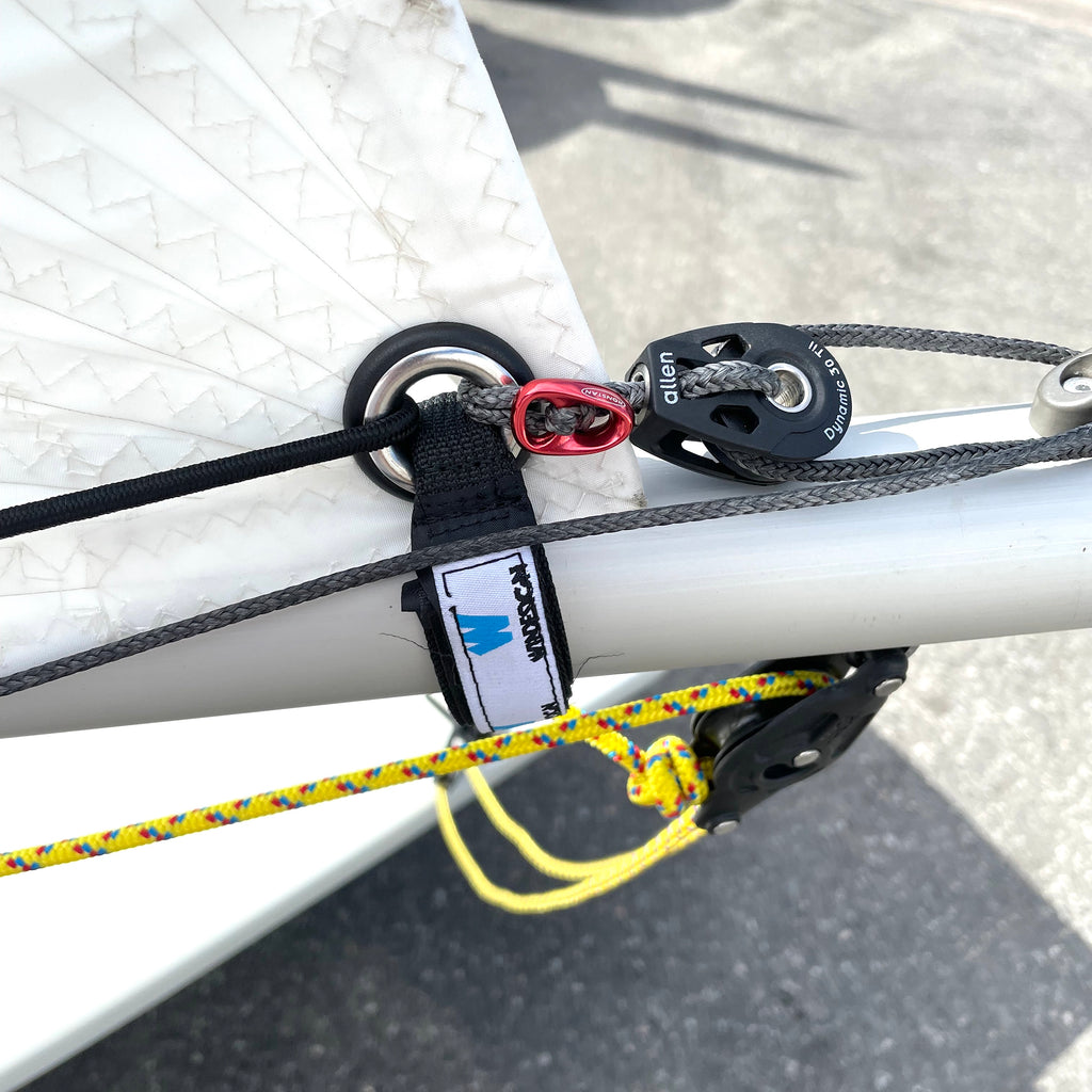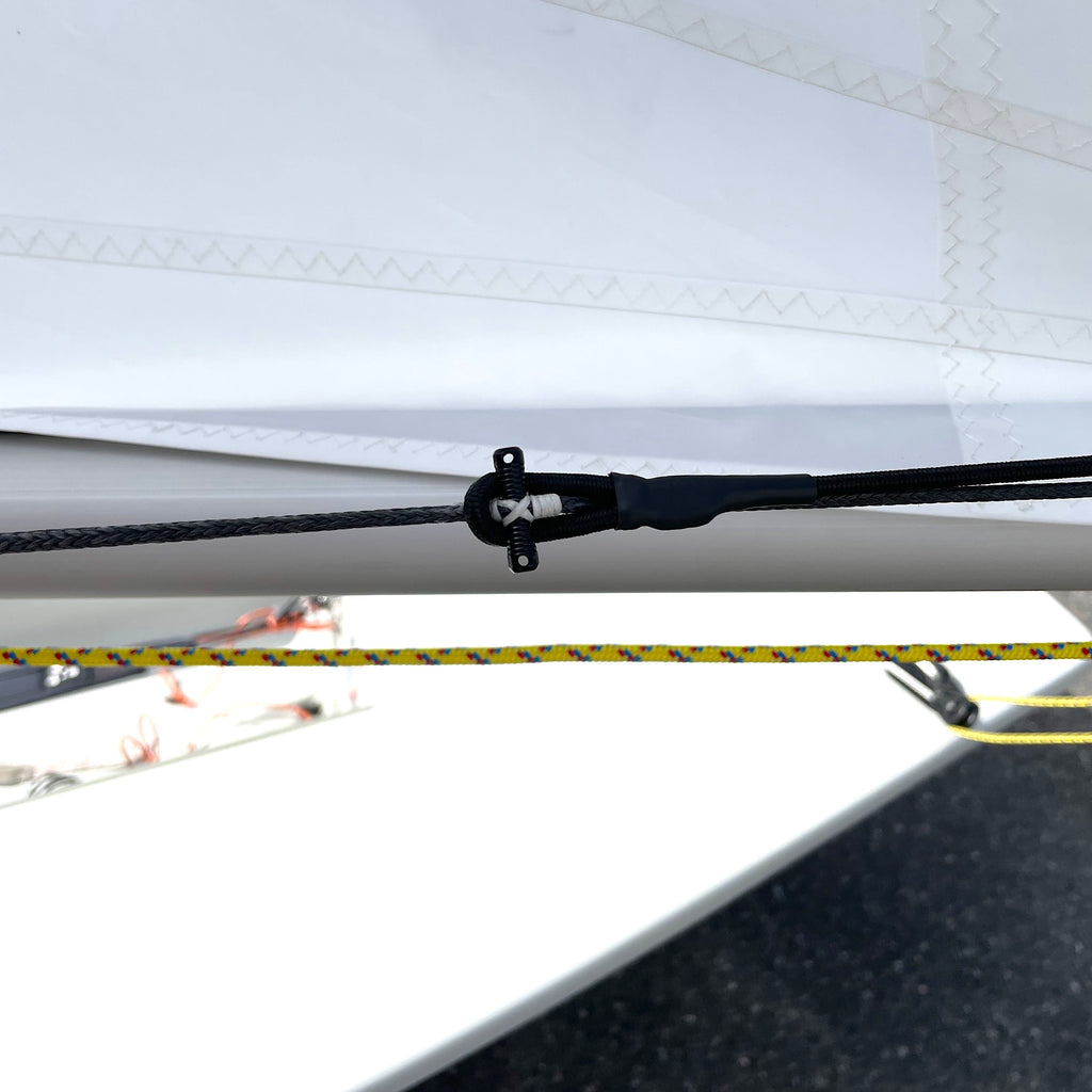 Gummicord till uthalet på ILCA/Laser. Försett med öga i ena änden för att fästas runt ett dogbone. Hjälper seglet framåt på bommen när man släpper på uthalet.