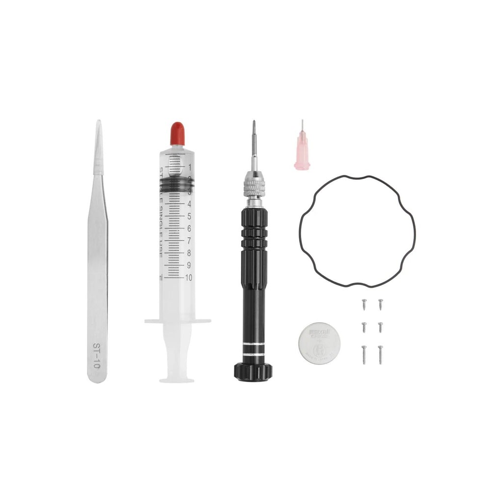 Batteribyteskit från Optimum Time för OS3- och OE3-serierna av startklockor. Innehåller allt du behöver för ett batteribyte.