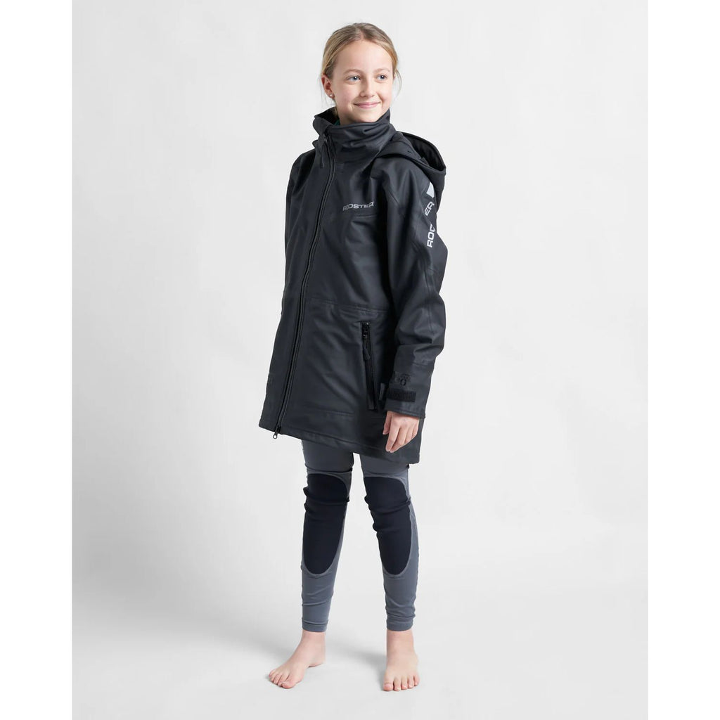 Den är tillverkad av samma vattenavvisande och andande yttertyg som Roosters klassiska Aquafleece-smock, med tejpade, helt vattentäta sömmar. Passformen är lång och rymlig, nästan som en poncho, och insidan är fodrad med ett värmande fleecelager.