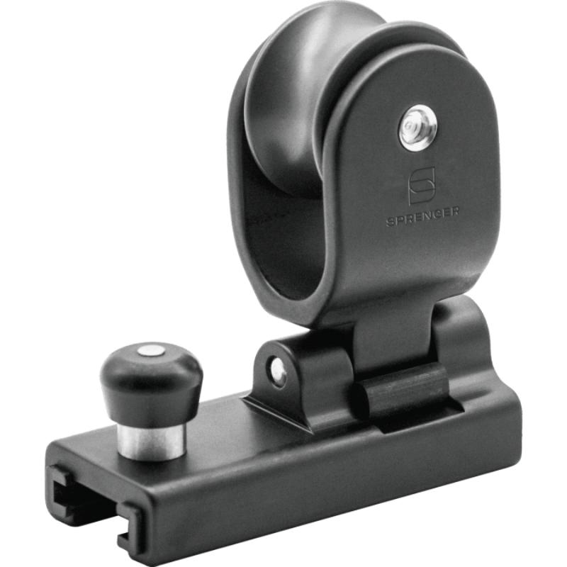 Glidlagrad genuatravare med pinstop-justering. 32 mm modellen rekommenderas till max. 12 meter långa jollar och små kölbåtar. Passar Sprengers 32 mm T-skena som finns i olika längder. Finns även silveranodiserad. 32 mm innerbred för skotet.