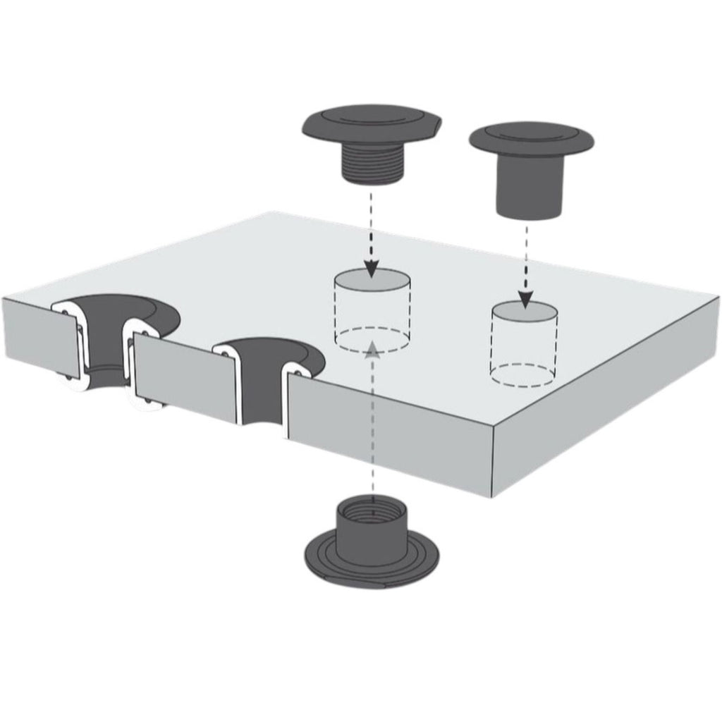 Denna genomföring i aluminium monteras i skott, däck eller andra ytor som linor ska passera igenom.