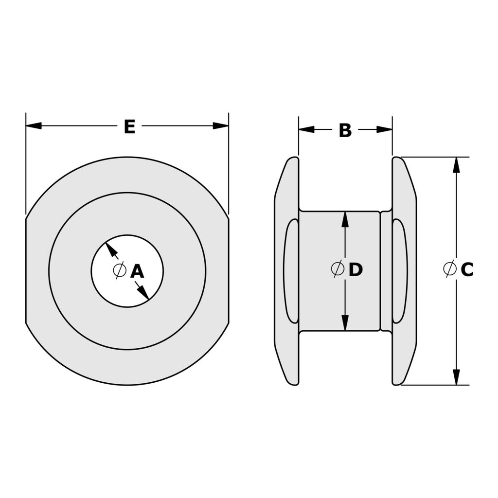 Denna genomföring i aluminium monteras i skott, däck eller andra ytor som linor ska passera igenom.