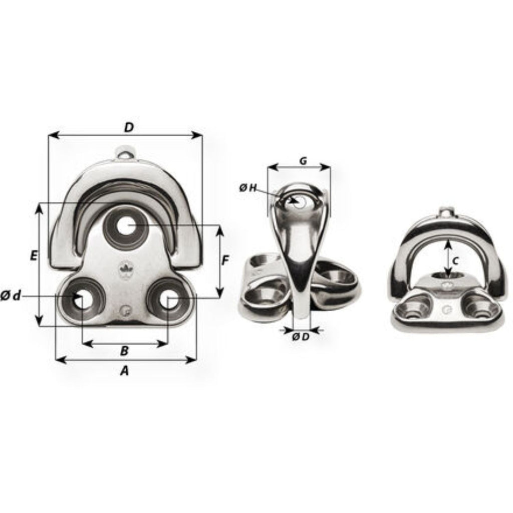 Folding padeye med hunsvott från Wichard tillverkad i rostfritt stål. Kompakt design optimerad för att förhindra slitage på linor. Tre bultar.