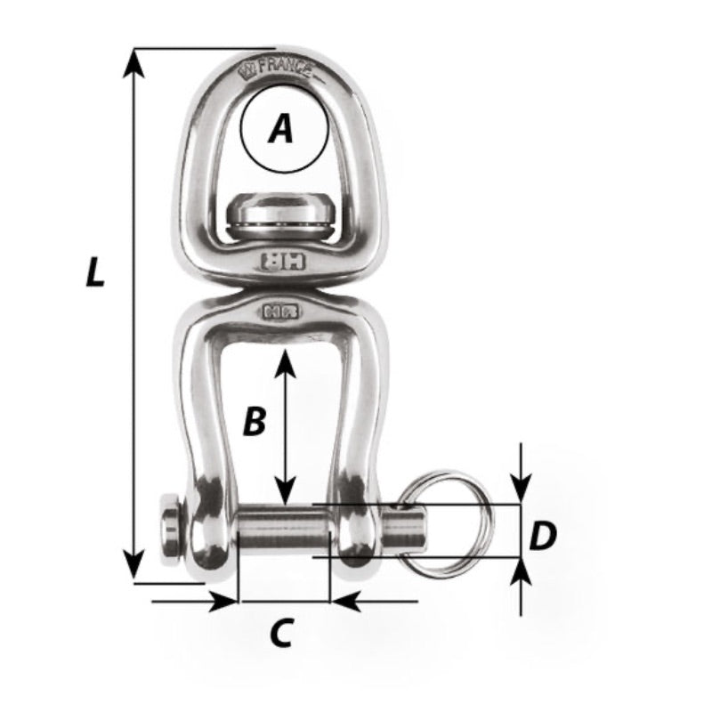Svirvel från Wichard med riggbult i den ena ändan. Tillverkad i rostfritt stål med extra hög arbets- och brottlast.